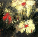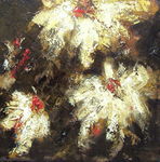 De schilderijen hebben door zwart en goud samen met een duidelijk laag over laag techniek toe te passen , een barokke uitstraling gekregen.
